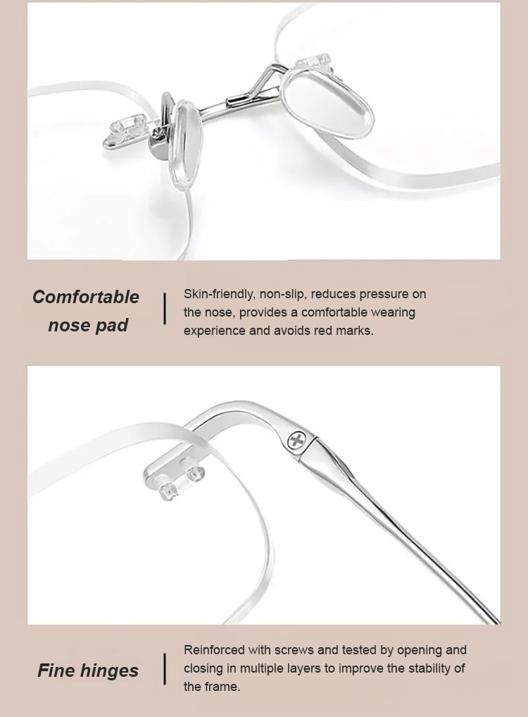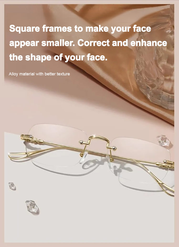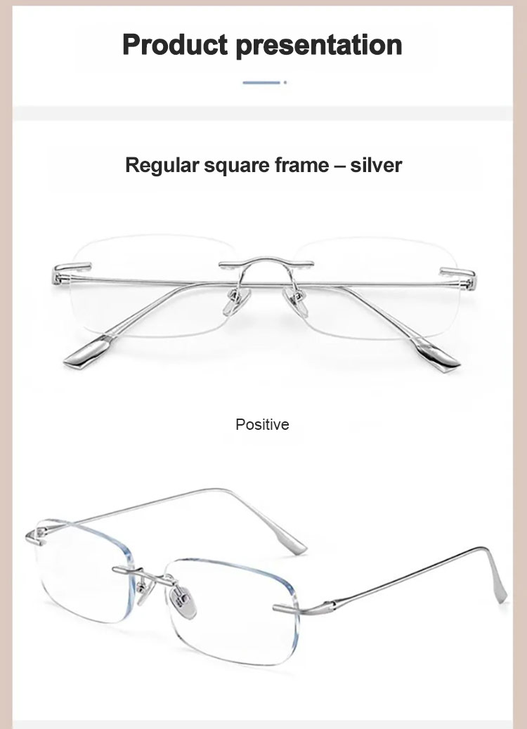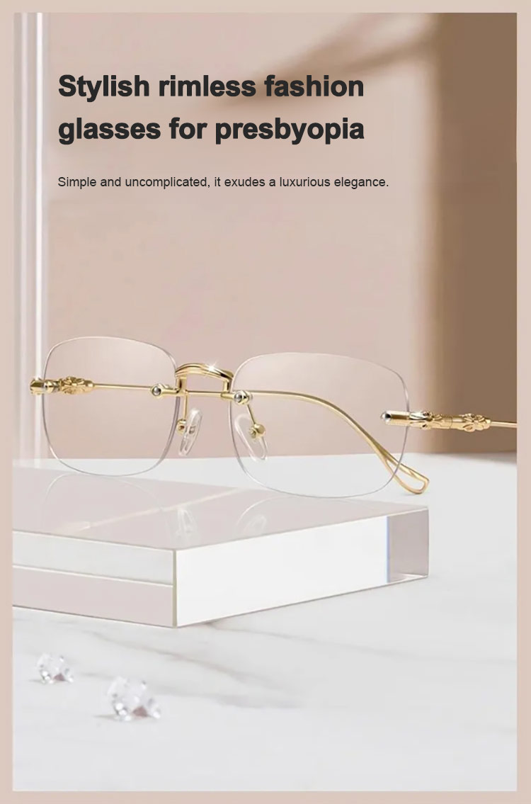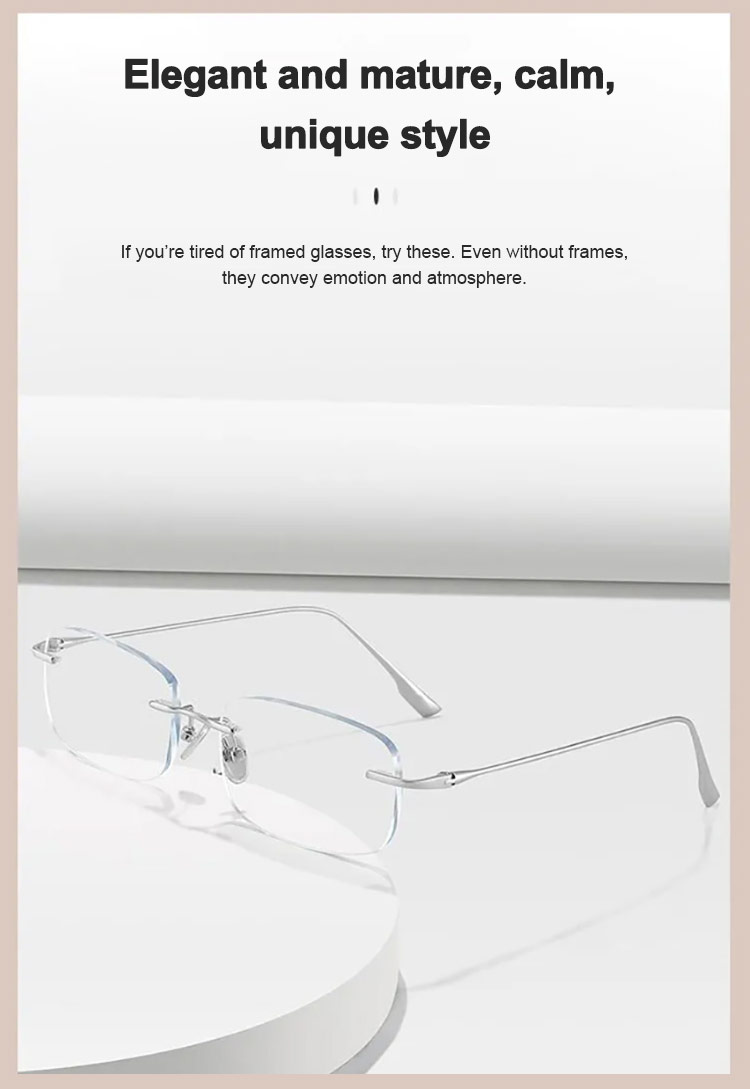 Light-sensitive photochromic frameless reading glasses, suitable for all ages.