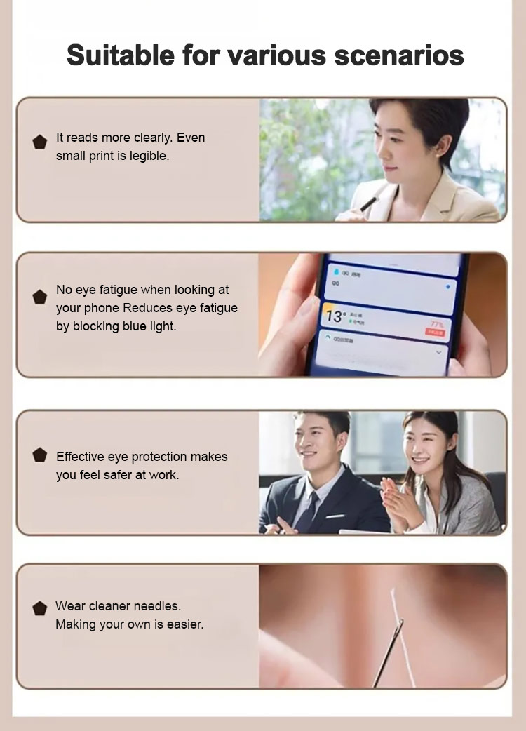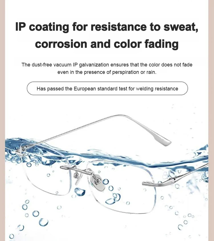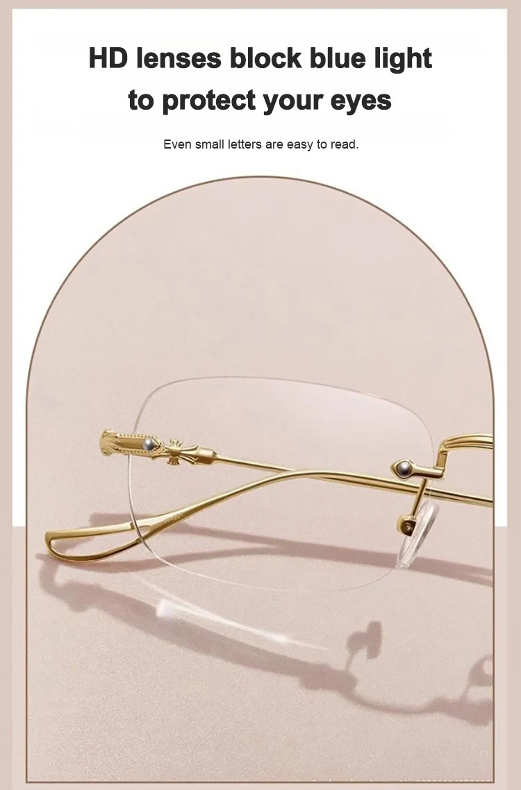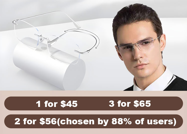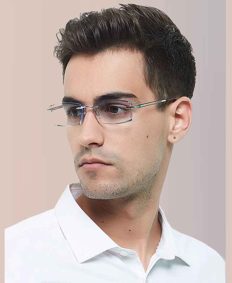 Light-sensitive photochromic frameless reading glasses, suitable for all ages.