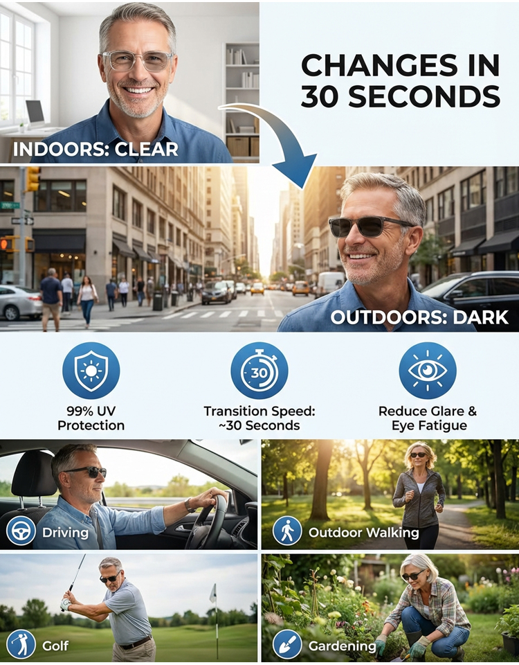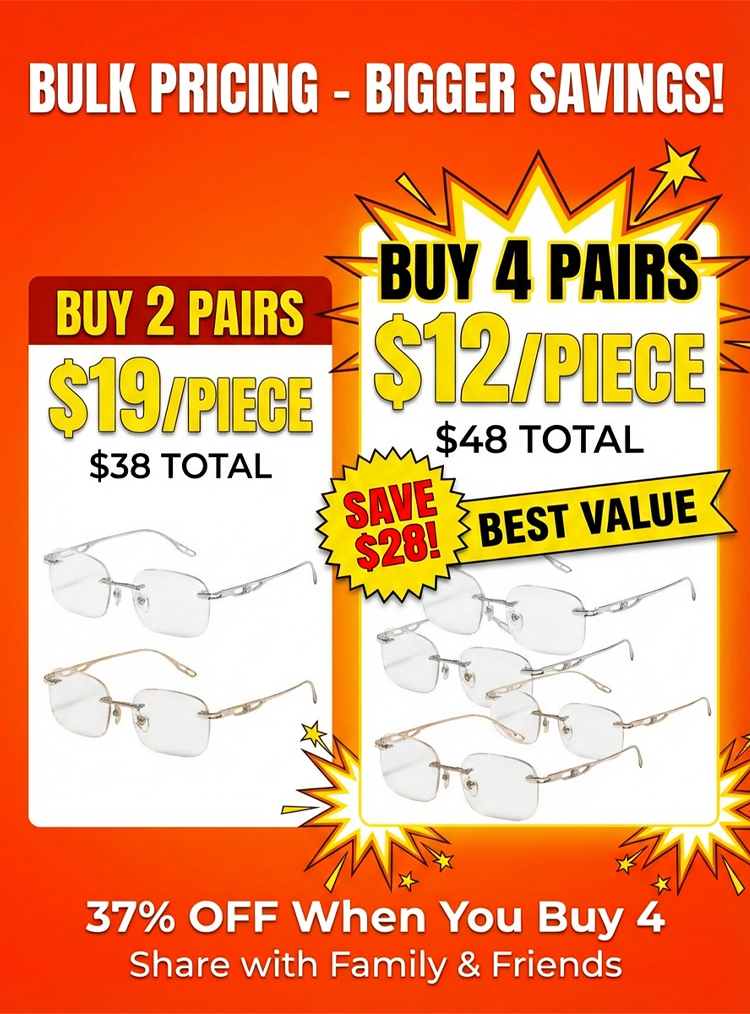 Clearance! 2 Pairs for $38 🔥Near & Far Vision, Feather-Light ✨Experience cloud-like Titanium. ☁️One pair for all distances. 🔭Photochromic lenses tint instantly. 🌤️High-def lenses reduce digital eye strain. 📚Our lenses tint automatically. 🕶️Port congestion clearance! Direct from factory at a loss. 🚢High quality, low price. BOGO sale for the whole family. 🎁